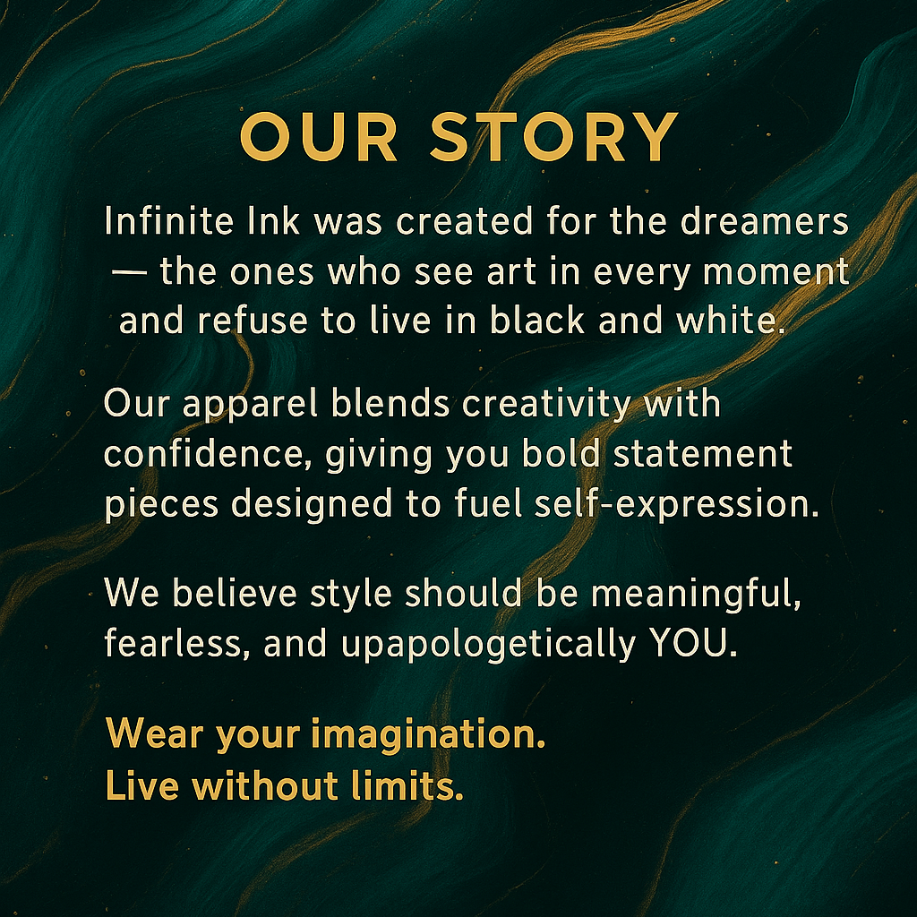 Infinite Ink is a cosmic streetwear brand designed for dreamers and free spirits. Every design represents creativity, confidence, and intention. Wear your energy.